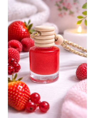 El perfume de frutos rojos envuelve tu coche con una fragancia alegre y vibrante, creando una sensación acogedora y muy agradable en cada trayecto.