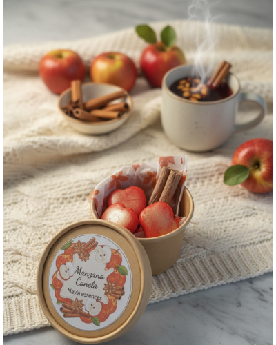 🍏 Manzana Dulce y Canela Reconfortante: Imagina el aroma de una tarta de manzana casera con un toque especiado de canela flotando en el aire. Eso es exactamente lo que nuestros wax melts de Nayla essences te ofrecen. ¡Un abrazo aromático para tu alma! 🤤