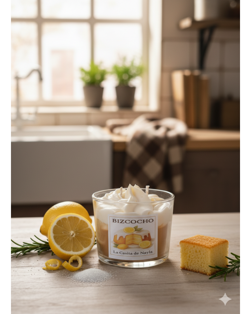 El aroma fresco y dulce de un bizcocho casero recién horneado, con el toque cítrico y alegre del limón.