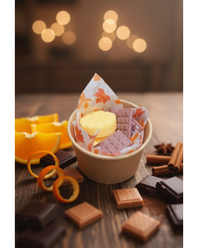 Una fusión exquisita que despierta los sentidos. El cacao intenso se entrelaza a la perfección con la naranja vibrante y jugosa, creando un aroma dulce, reconfortante y lleno de energía. Un postre para tu hogar.