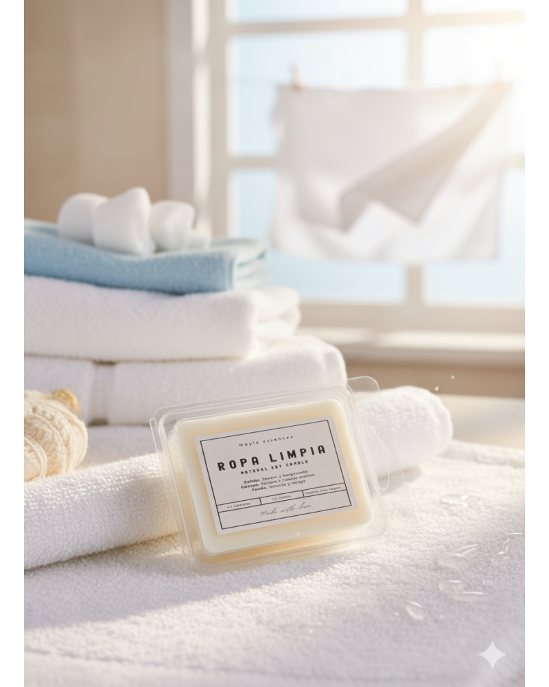🌿 Disfruta de la frescura del hogar con nuestras tabletas de cera de soja 100% natural, infusionadas con el delicado y reconfortante aroma a ropa recién lavada.